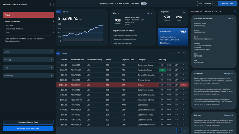 Led the design of a first-of-its-kind Case Management system that reimagined how analysts investigate and resolve fraud cases. By introducing intuitive workflows, and role-based experiences, I transformed a complex, regulation-heavy process into a streamlined, intelligent product.