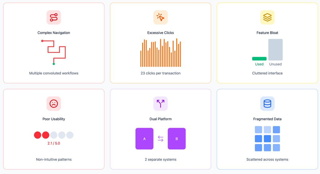 Navigating Complex Systems and Stakeholder Expectations: The CLM system included multiple interconnected user journeys across legacy and new workflows. I led the prioritization of key journeys, conducted in-depth analyses of legacy systems, and developed evidence-based talking points for demos. Partnering closely with PMs and BAs, and reviewing SRS documentation rigorously, I shifted stakeholder discussions from “feature parity” concerns to focus on performance improvements and enhanced user experience.