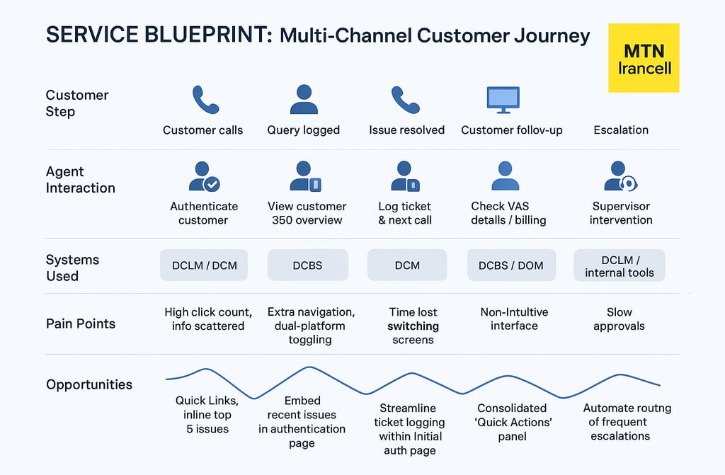 Through a series of business workshops, I discovered a key objective beyond adopting new technologies and improving usability: reducing call center response time. As Irancell’s customer base rapidly expanded, support requests and complaints surged, driving up operational costs and the need for additional agents. By streamlining workflows and enhancing system efficiency, the business aimed to reduce agent workload, cut hiring costs, and maintain competitive service quality.