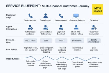 As the first UX designer for Tecnotree’s onshore operations, I adapted Tecnotree’s human-centered Digital Customer Lifecycle Manager (DCLM), part of its broader suite (DCLM, DCM, DOM, and DCBS), which helps telecom operators build personalized customer relationships through automated onboarding. I led end-to-end UX—research, journey mapping, feature design, and usability testing, resulting in streamlined workflows, reduced call queues, and faster, more personalized experiences with real-time 360° insights.